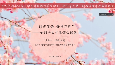3月19日上午,2022年湖南师范大学及对口协作学校学工、研工系统第一期心理健康教育专题培训以腾讯会议的形式顺利举行。