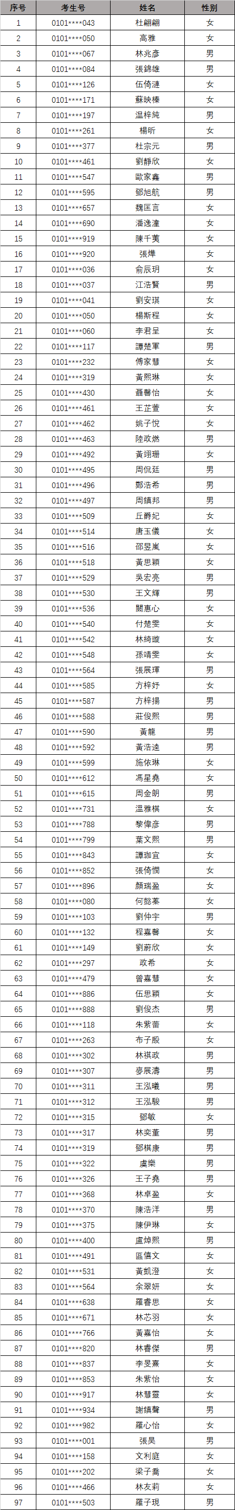根据《教育部办公厅关于做好2025年内地高校招收香港中学文凭考试学生工作的通知》(教港澳台厅函〔202421号)及学校招生简章相关要求,经专家组对考生提交的视频材料考核,现将面试考核合格考生名单公示如下: