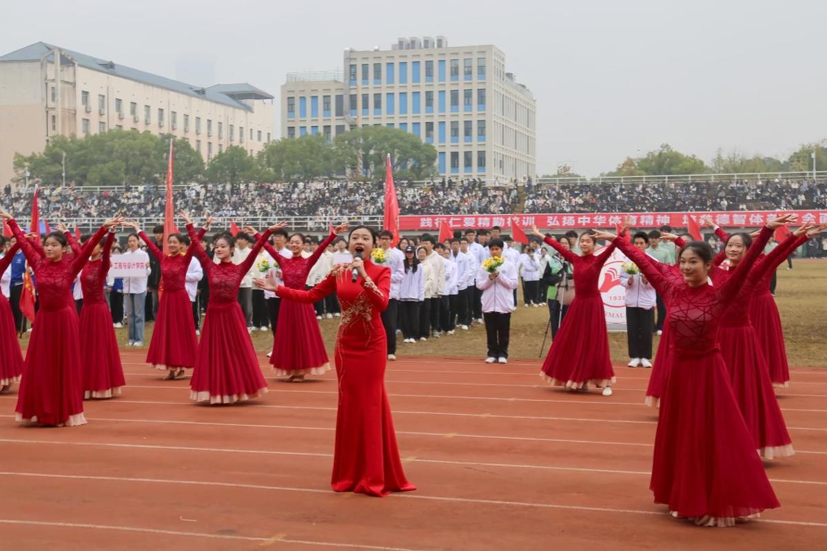 开幕式表演高潮迭起,歌舞表演以嘹亮歌声与灵动舞步抒发青春情怀;空手道动作规范、气势刚劲,彰显了拼搏力量;健美啦啦操热情迸发,用整齐队形与昂扬姿态点燃全场;团体太极拳动静相济,以舒展招式与沉稳气韵展现传统文化魅力。