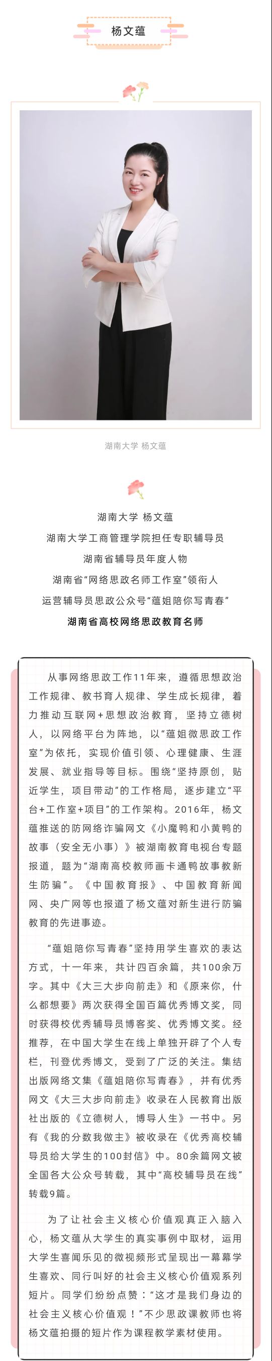 上一条:陈丽荣:湖南师范大学副教授、硕士生导师、国家二级心理咨询师、第一批“湖南省高校网络教育名师培育支持计划”入选者