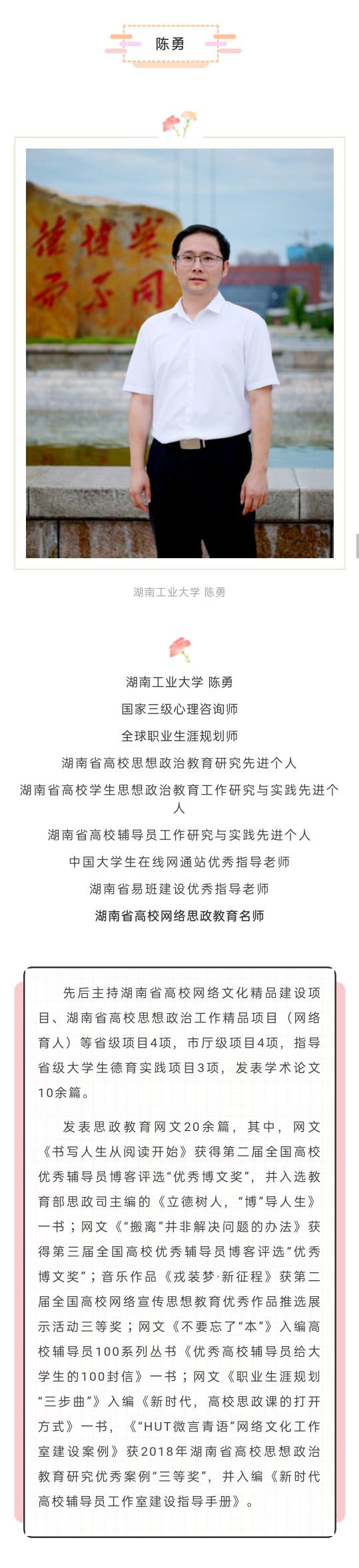 下一条:陈丽荣:湖南师范大学副教授、硕士生导师、国家二级心理咨询师、第一批“湖南省高校网络教育名师培育支持计划”入选者