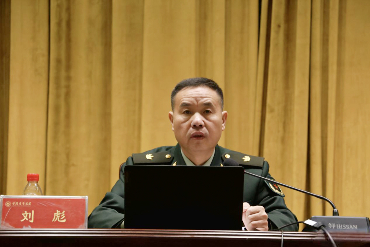 现场,刘彪从当前国际格局与国家安全形势切入,系统阐述了这一思想形成的历史逻辑与现实依据。他指出,深入理解习近平强军思想,须把握“时代之变、历史之变、世界之变”的宏观背景,充分认识其作为强军事业根本遵循的必然性与重要性。在阐释其核心要义时,刘彪以强军目标为引领,结合“五个坚持”的军事观与方法论,对“十一个明确”等内容作了深入解读,勾勒出这一科学体系的完整脉络。最后,他就贯彻落实强军思想提出实践指引,强调须持续强化理论武装、自觉担当国防使命,并勉励师生增强忧患意识、胸怀大局,将思想认同转化为投身强国强军事业的实际行动。