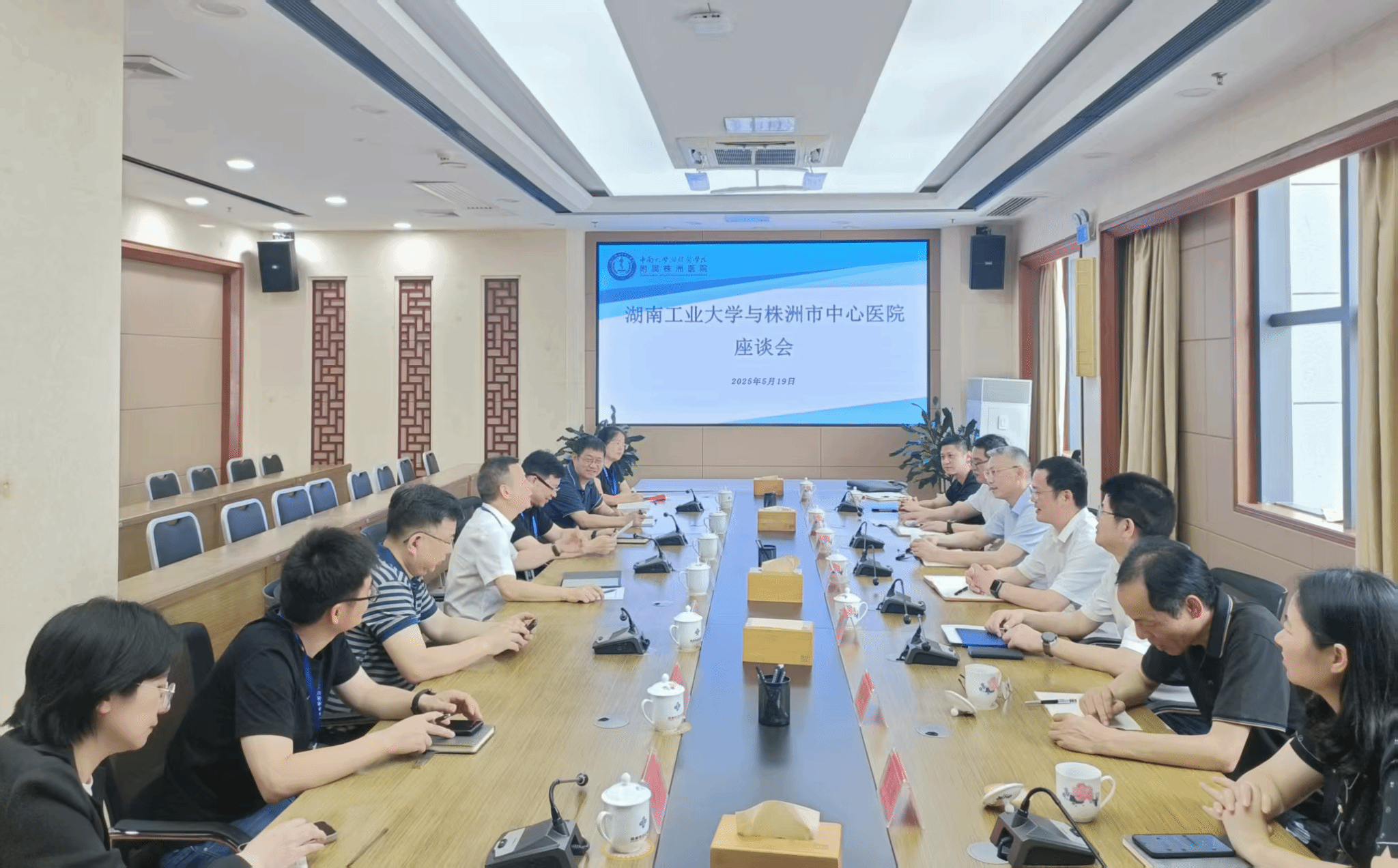 5月19日,湖南工业大学校长蒋昌波、副校长何杰带队赴株洲市中心医院进行调研交流。株洲市中心医院党委书记刘建军、院长陈迅、副院长彭怀德、龙云铸等出席座谈交流会。