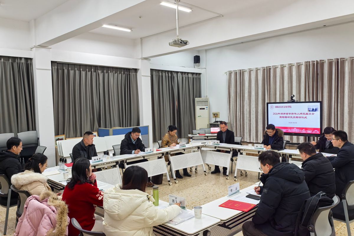 (通讯员 陈志亨)1月22日,2026年湖南省华侨华人研究座谈会暨特聘研究员聘任仪式在我校举行。湖南省侨联二级巡视员汤立,湖南省华侨华人研究中心主任、我校副校长唐贤清出席会议。座谈会由国际汉语文化学院副院长唐秀丽主持。