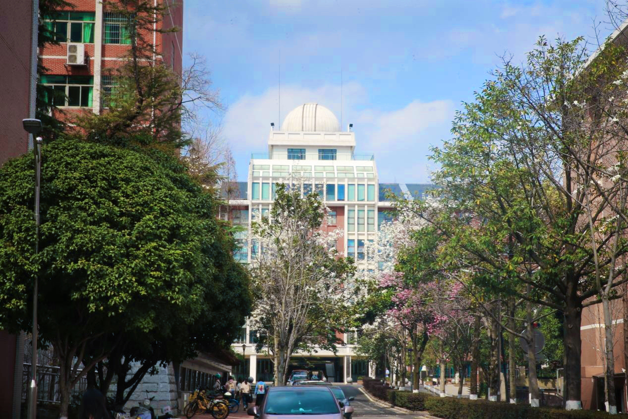 老校门斑驳的砖缝里藏着往昔的春泥,玻璃幕墙倒映出今朝的繁花。在湖师大,春天擅长时空折叠术,是过去与未来的信使。在树达园,你可以同时触摸三个时代的脉搏:民国老校门砖缝里的车前草,仍咀嚼着1938年南迁时的雨;八十年代栽种的悬铃木,年轮里录着恢复高考后的晨读声;而玻璃幕墙上闪过的樱花倒影,正被镜头编码成数字记忆。