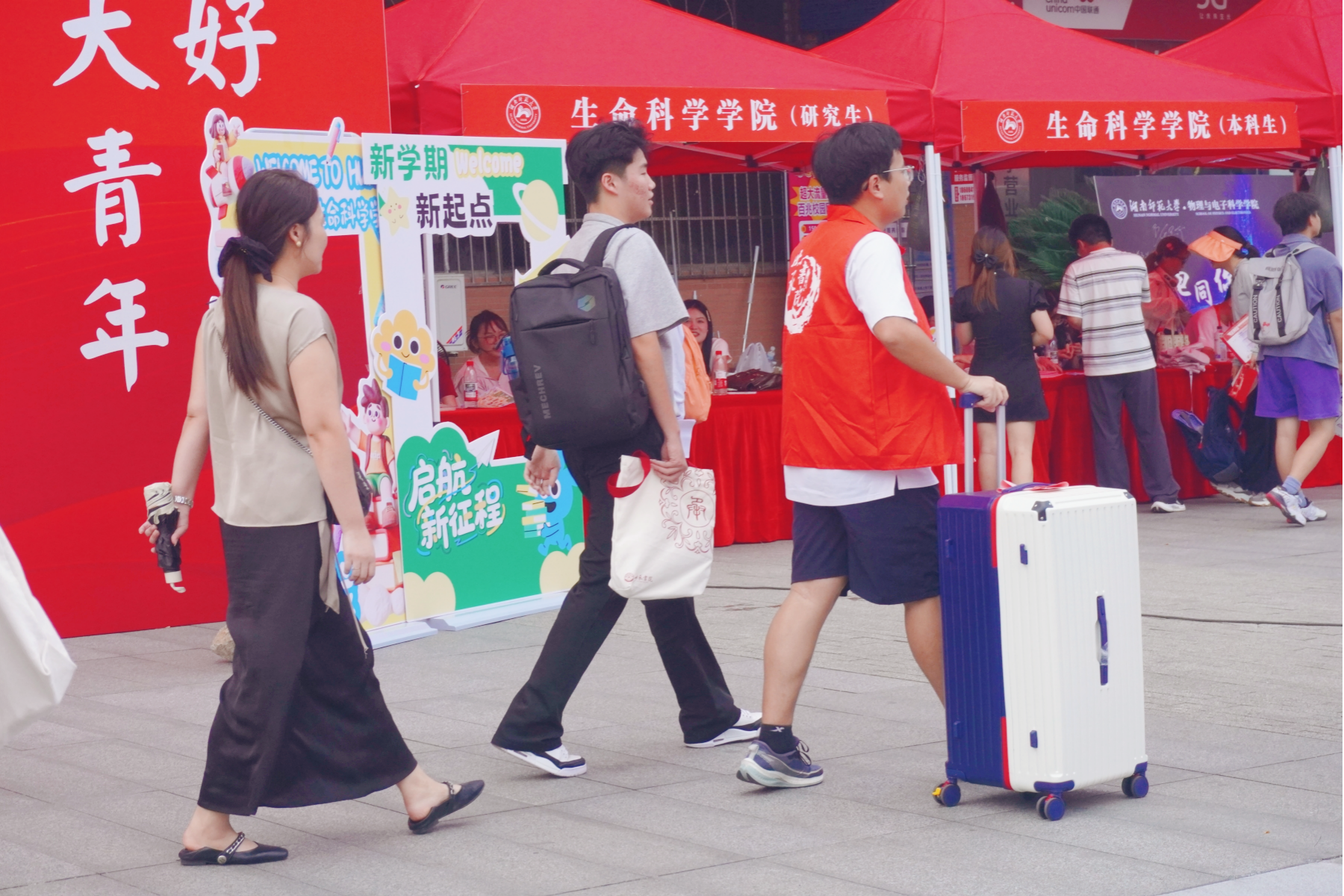 行李箱滚轮轻碾过青石板,清脆声响里满是青春的朝气。校园里“欢迎新同学”的展板早已悄然伫立路旁,静候着每一位远道而来的身影。新生登记表上认真签下的名字,不仅是信息的填写,更是“HNNUer”身份的郑重确认。从此,这片校园将承载起他们的求学梦,开启崭新的青春的篇章。
