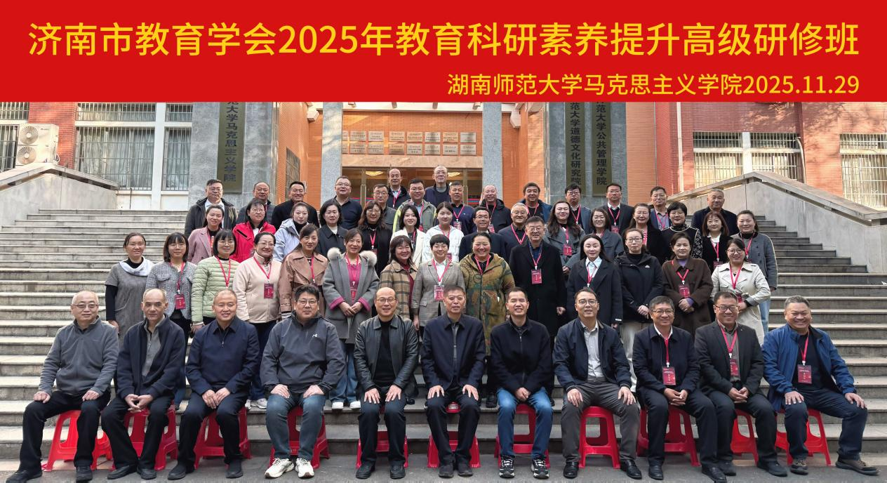 济南市教育学会会长刘明辰在讲话中,对湖南师范大学马克思主义学院为此次研修班所做的精心筹备和周密安排表示衷心感谢。他指出,教科研骨干教师是推动区域教育质量提升的中坚力量,提升教育科研素养是新时代教师专业发展的必然要求,也是济南市教育学会持续推进教育创新的重要举措。此次组织骨干力量赴“双一流”高校研修,为老师们搭建了向专家学习、与同行交流的宝贵平台。刘明辰会长勉励全体学员珍惜难得的学习机会,以“空杯心态”潜心钻研,主动借鉴先进的科研理念与实践经验,聚焦教育教学中的重点难点问题开展研究,不断提升自身科研能力与育人水平,为济南市教育事业的高质量发展注入新的活力。