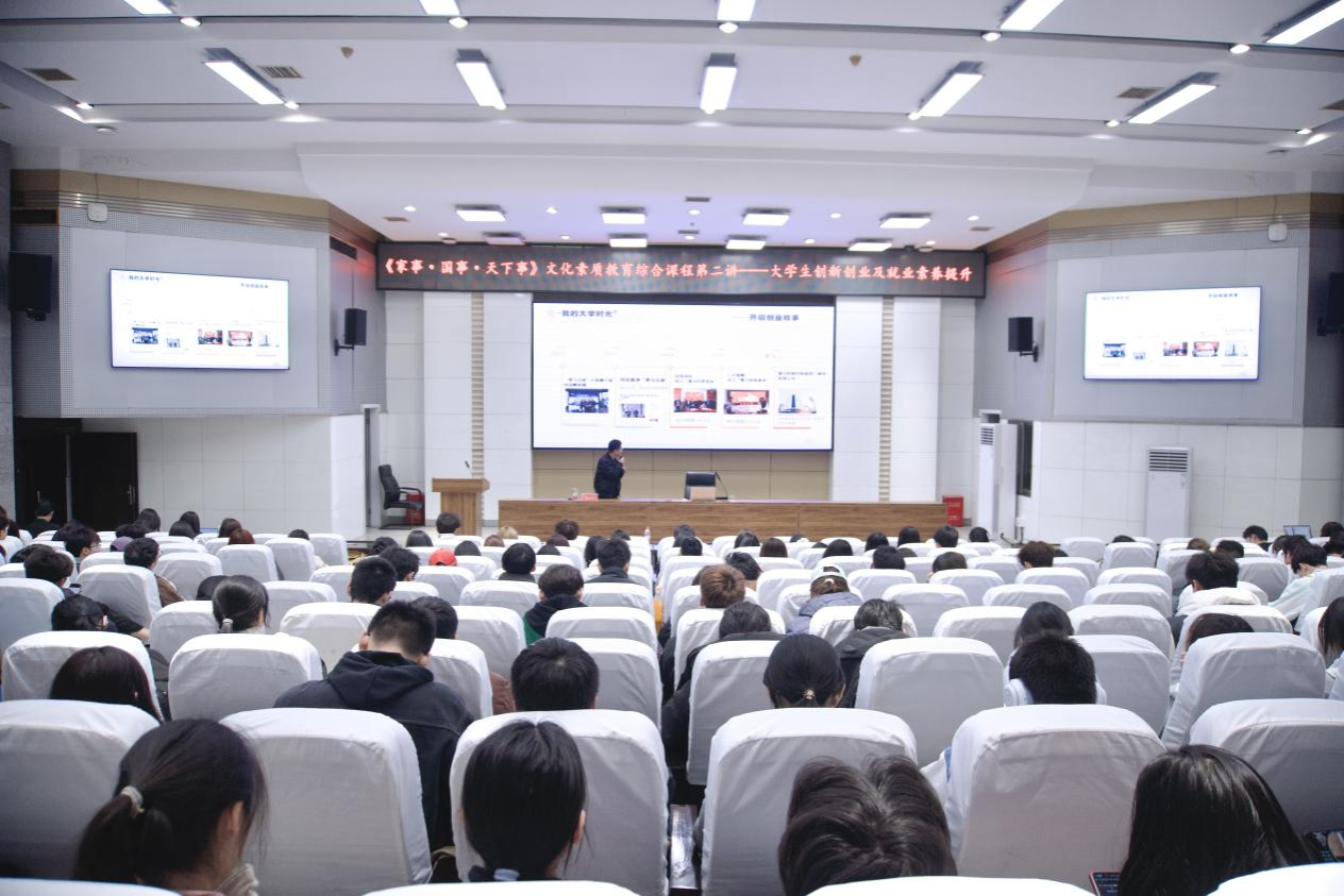 (通讯员 武雪乔 孙嘉益 钟婷婷)3月20日晚,我校《家事·国事·天下事》文化素质综合课程第二讲在至善讲堂开展。此次课程由我校2012级校友,现任黑马科教控股集团(湖南)有限公司董事长、教育部中国国际创新大赛国赛评委胡含兵主讲,校学生会主席团成员马旭琪主持。