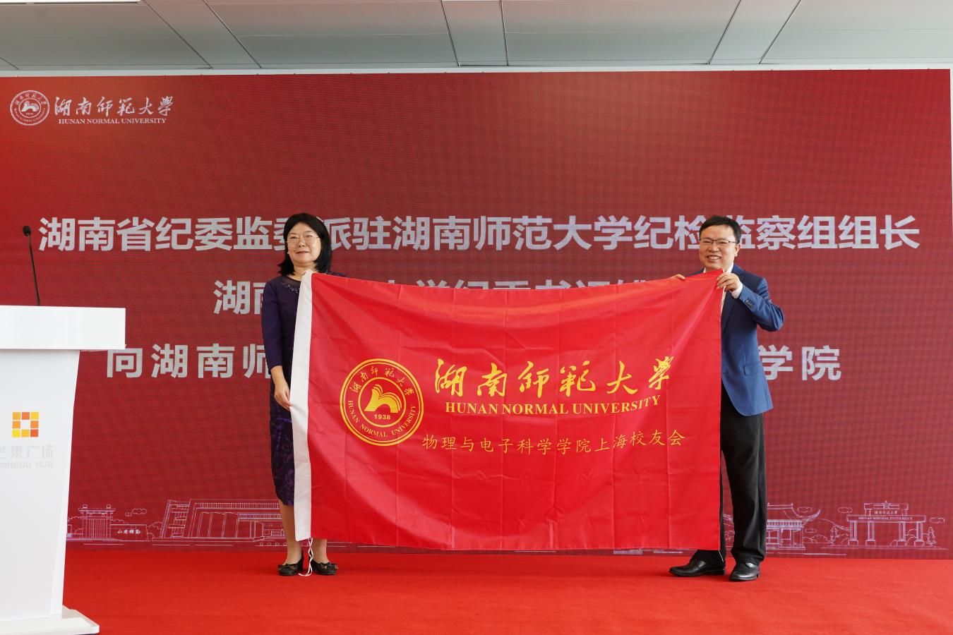 姚春梅为校友会授会旗,并为理事会成员颁发聘书。她代表学校向校友会的成立表示热烈祝贺,并表示,校友是一所大学的品牌、形象和气质,也是学校建设发展的命运共同体。她希望校友常回家、多联系,共同见证母校的发展变化,通过“校友回湘”为湖南“三高四新”美好蓝图实现贡献湖南师大力量。