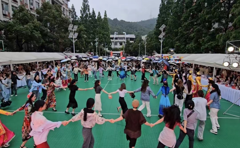 本届文化节以“中华民族一家亲 团结奋进新时代”为主题,共分为开幕式、文化展示、文艺演出三个环节。文化展示环节设置了二十个风采展示区,内容涵盖中华民族文化精品展、中华民族美食展以及各民族文化展等,由汉族、哈萨克族、土家族、蒙古族、藏族、彝族、壮族等民族的学生搭起二十余顶帐篷展示多元荟萃的中华文化,生动地展示不同民族的独特风情。本届民族文化节还设置了竹竿舞、跳马脚、投壶等一系列特色游戏,各民族学生手牵手围圈舞蹈,师生通过民族知识问答了解了游戏背后的中华民族文化内涵,切身感受灿烂的中华民族文化。