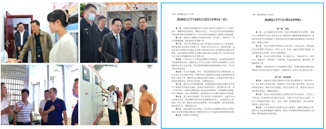 湖南师范大学深入学习贯彻习近平总书记关于教育的重要论述,深刻理解高校安全工作的重要性,多措并举、多元并进,织密织牢学生安全教育管理的底线和防线,协同打造全方位、多角度、立体化的学生安全教育“名片”。