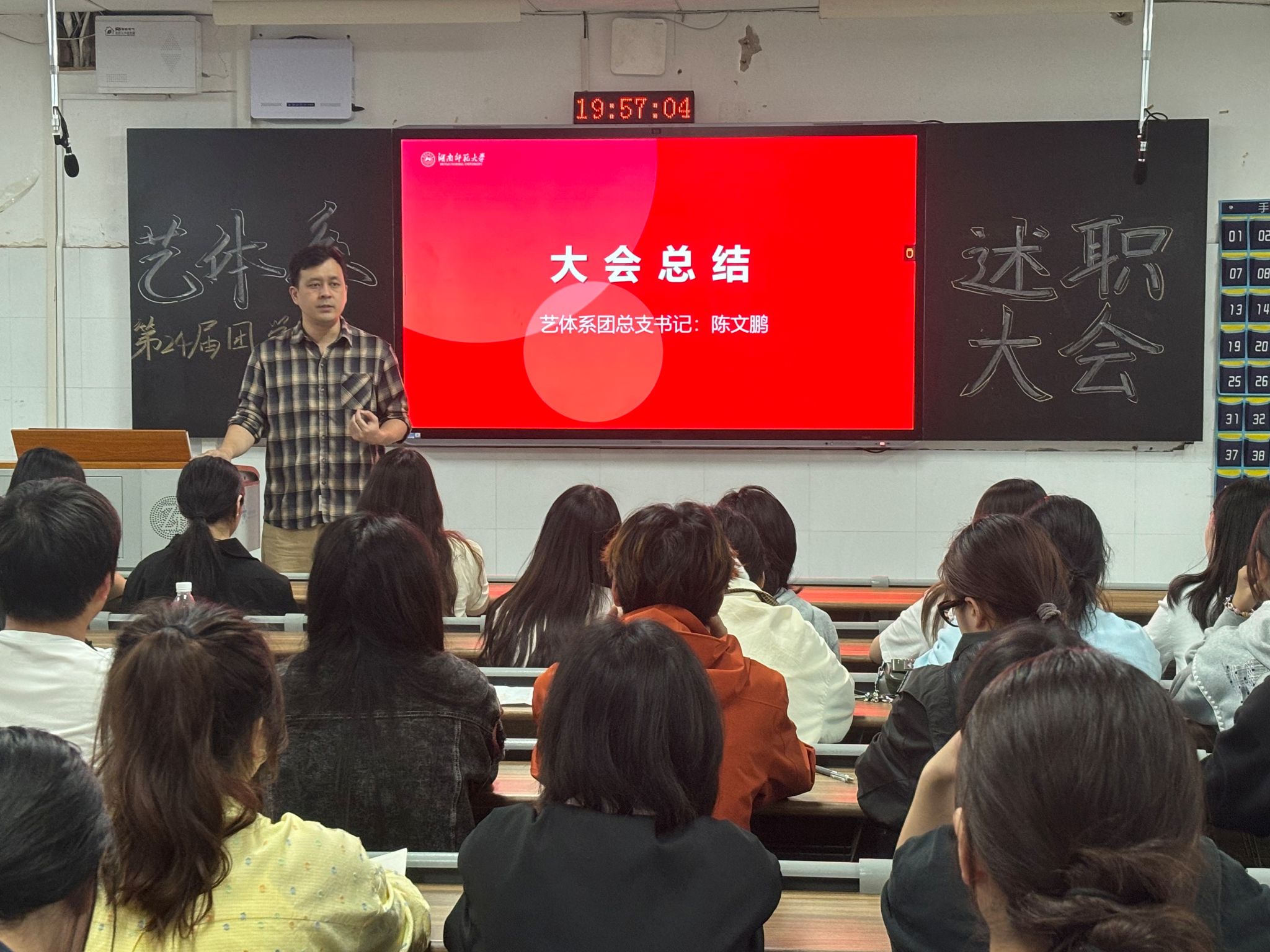 (通讯员 文思宇 任岷 李嘉惠)3月26日晚上,我院艺体系在树达楼106教室召开团学干部述职大会。艺体系团总支书记陈文鹏出席会议。会议由艺体系青年发展部部长易洁主持。