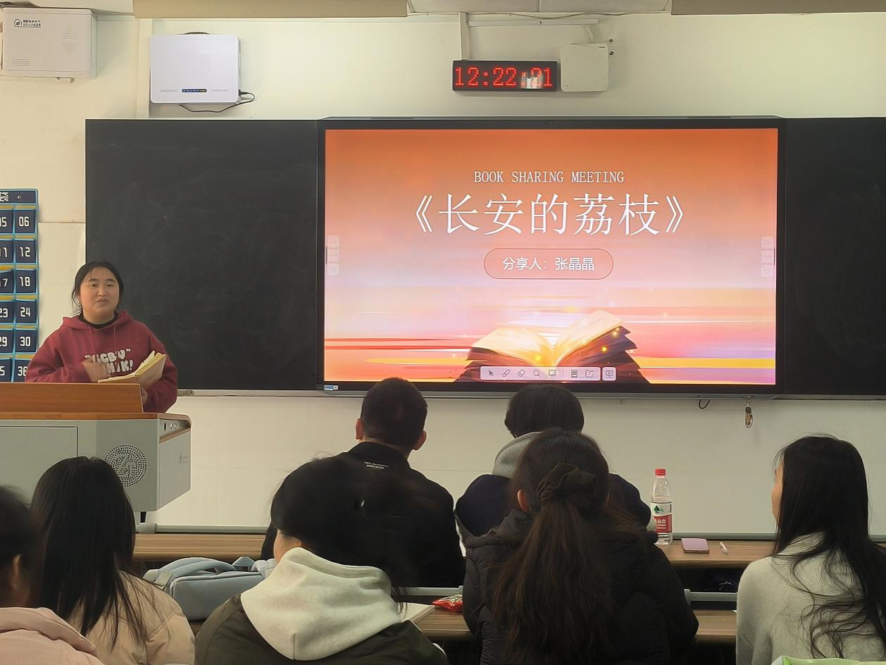 团总支副书记张晶晶、唐建东分别作书籍分享。他们表示,同学们作为青年一代应勇于担当,将个人理想融入国家发展层面,为中国式现代化建设注入青春活力。要进一步增强文化自信和行动自觉,以梦为马、以爱导航,踔厉奋进、笃行致远。