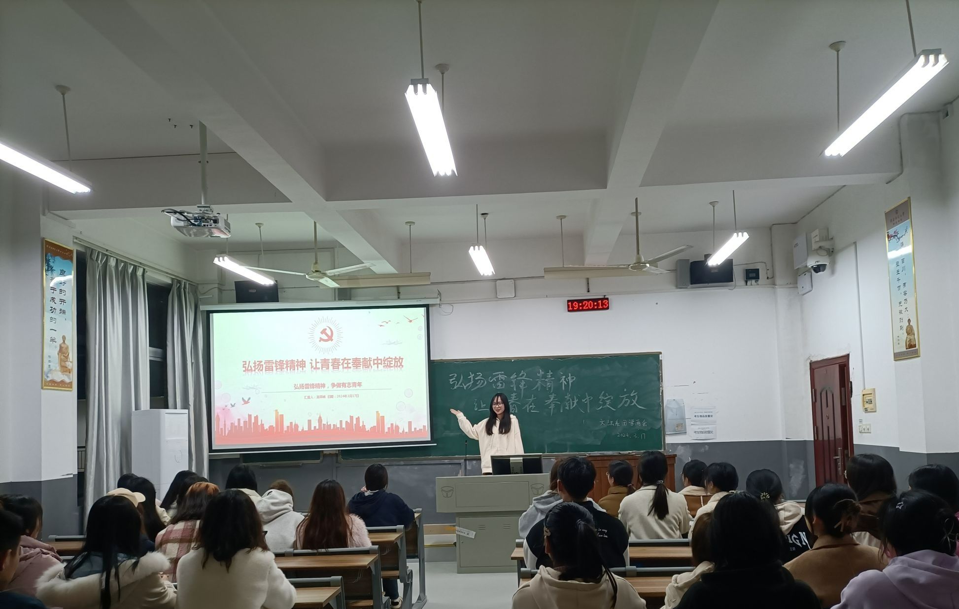 简翠峰从介绍雷锋、雷锋精神的时代内涵以及雷锋精神的具体内容三个方面展开阐述。她表示,雷锋是一种积极向上的价值观和精神追求,全体成员不仅要加强专业知识的学习,更要注重追求高尚的精神品质,弘扬无私奉献、为民服务的责任感,在团学岗位上尽职尽责,矢志奋斗。