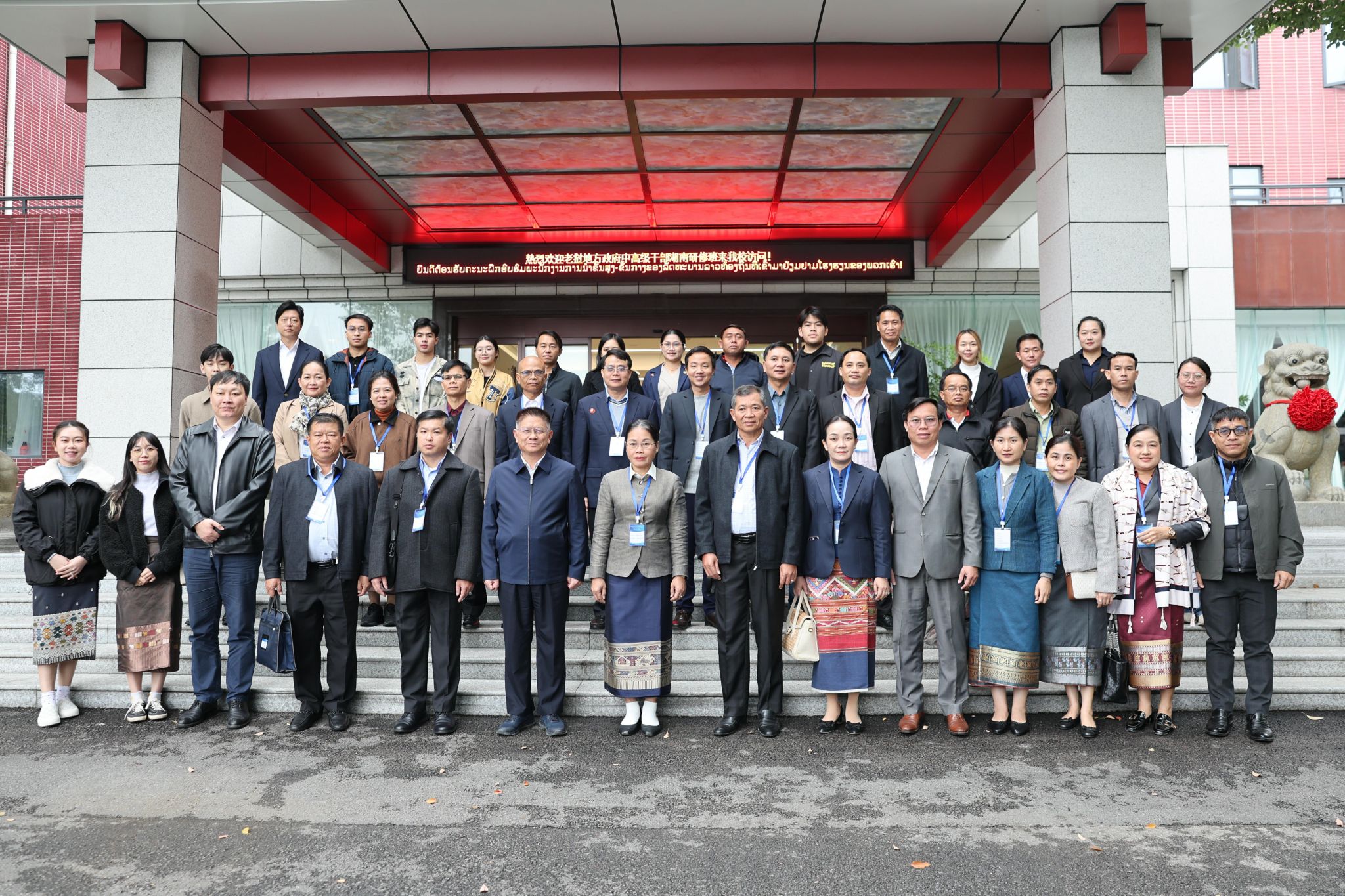 唐贤清对老挝政府中高级官员湖南研修团的来访表示热烈的欢迎,并简要介绍了我校的办校历史、学科建设等基本情况,以及关于老挝留学生的培养方案。他回顾了近年来对老挝学生的培养成果以及其优异表现。他表示,希望未来能进一步加强我校与老挝各政府部门在教育领域的合作,双方共同为中老两国的友好交流合作注入新的活力。