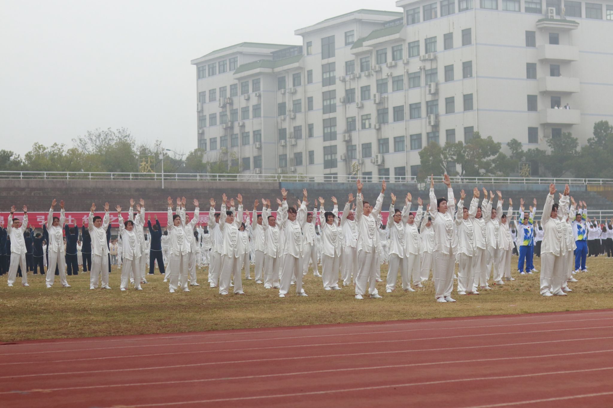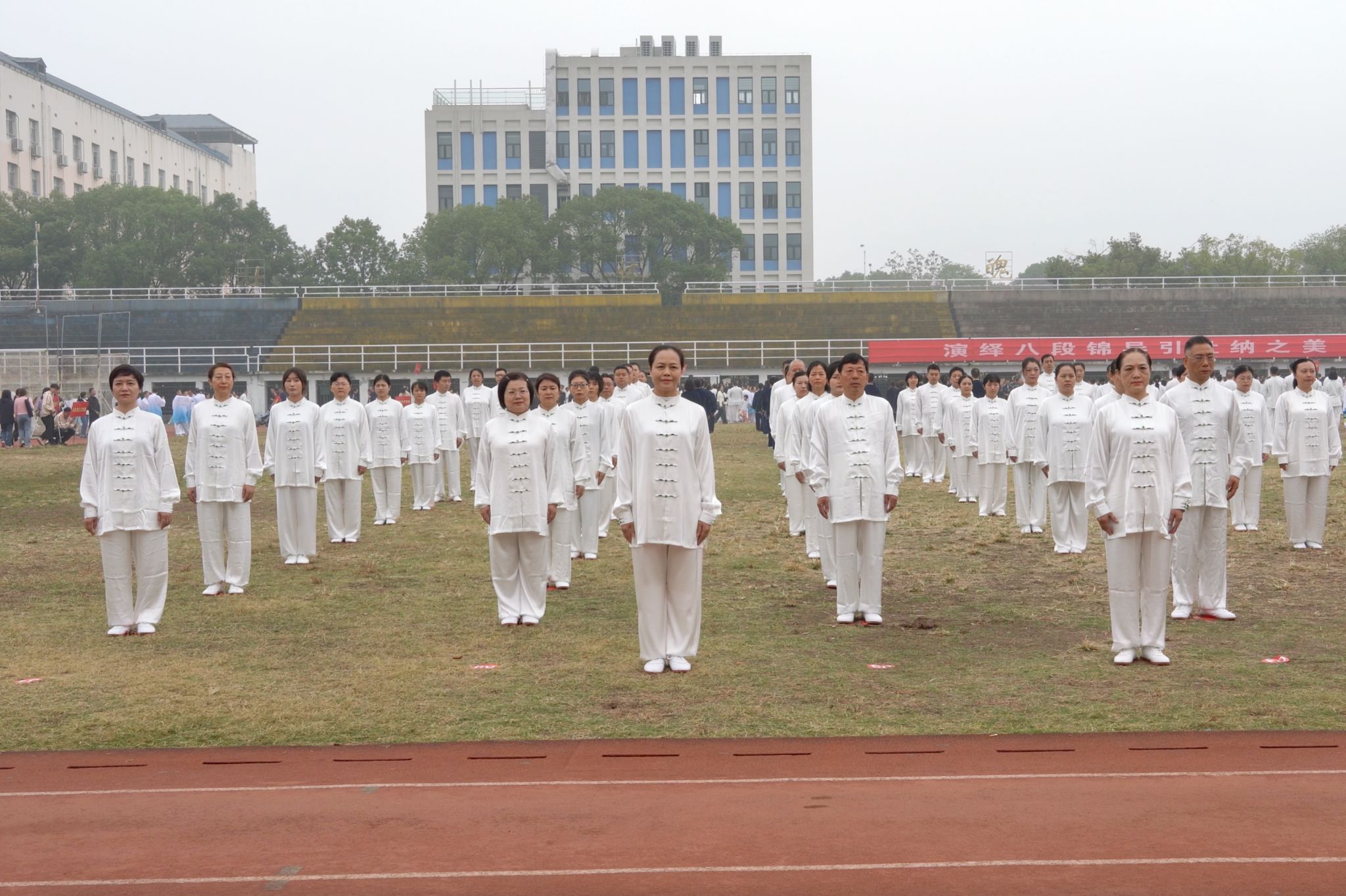 本次比赛共有来自全校的30余支代表队参加。赛前,我院教职工认真备赛,积极参加集中训练,精益求精地打磨自己的动作;在比赛过程中,身着统一的服装,以整齐划一的动作、饱含力量又不失柔和的姿态,诠释了八段锦意动形随、神行兼备、松紧结合、动静相兼的和谐之美,也展现出学院教职工积极向上、健康活力、团结一致的精神风貌。