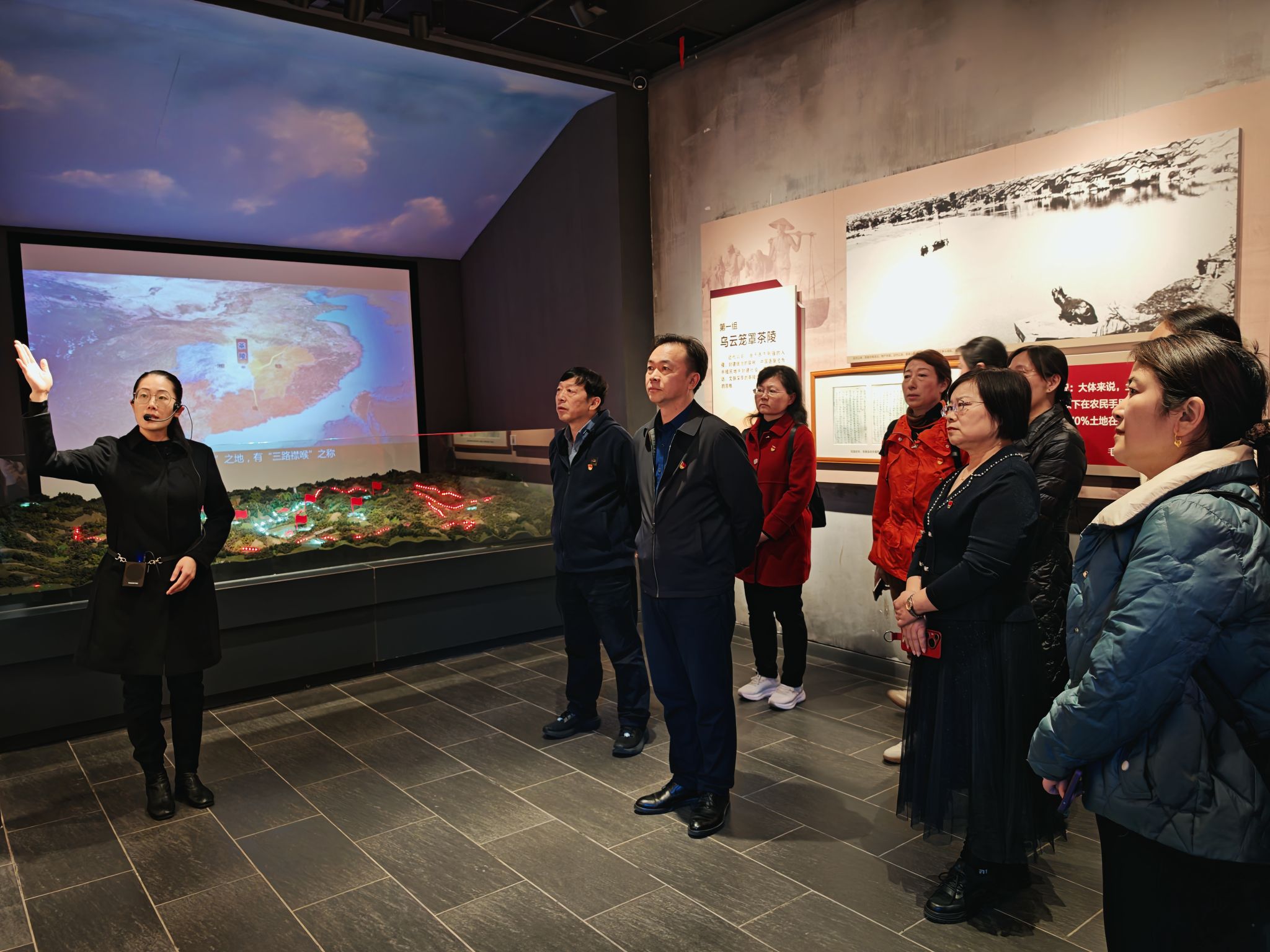 在茶陵县工农兵政府旧址正厅,全体党员,面对鲜红的党旗,重温入党誓词。馆内设有“毛泽东缔造的第一个红色政权——茶陵县工农兵政府历史陈列”,分为“潮起云涌,觉醒茶陵”“引兵井冈,首战茶陵”“建政茶陵,割据井冈”“红色政权,源自茶陵”“不忘初心,牢记使命”等5个部分13个展室,在讲解员的带领下,大家参观了纪念馆,追随革命先辈的历史足迹,缅怀革命先辈的丰功伟绩,领悟革命先辈的高尚品格。