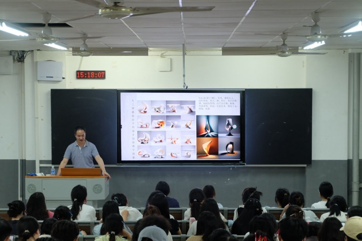 (记者 陈子英 周李羽檬) 5月22日下午,学院在树达楼216教室举办树达·思齐芙蓉大讲堂第四十一讲。湖南师范大学美术学院教授、工学博士,博士生导师范伟作了主题为“Ai助力下传统文化设计的传承与创新”的讲座。讲座由我院艺体系系主任贺昭泽主持。