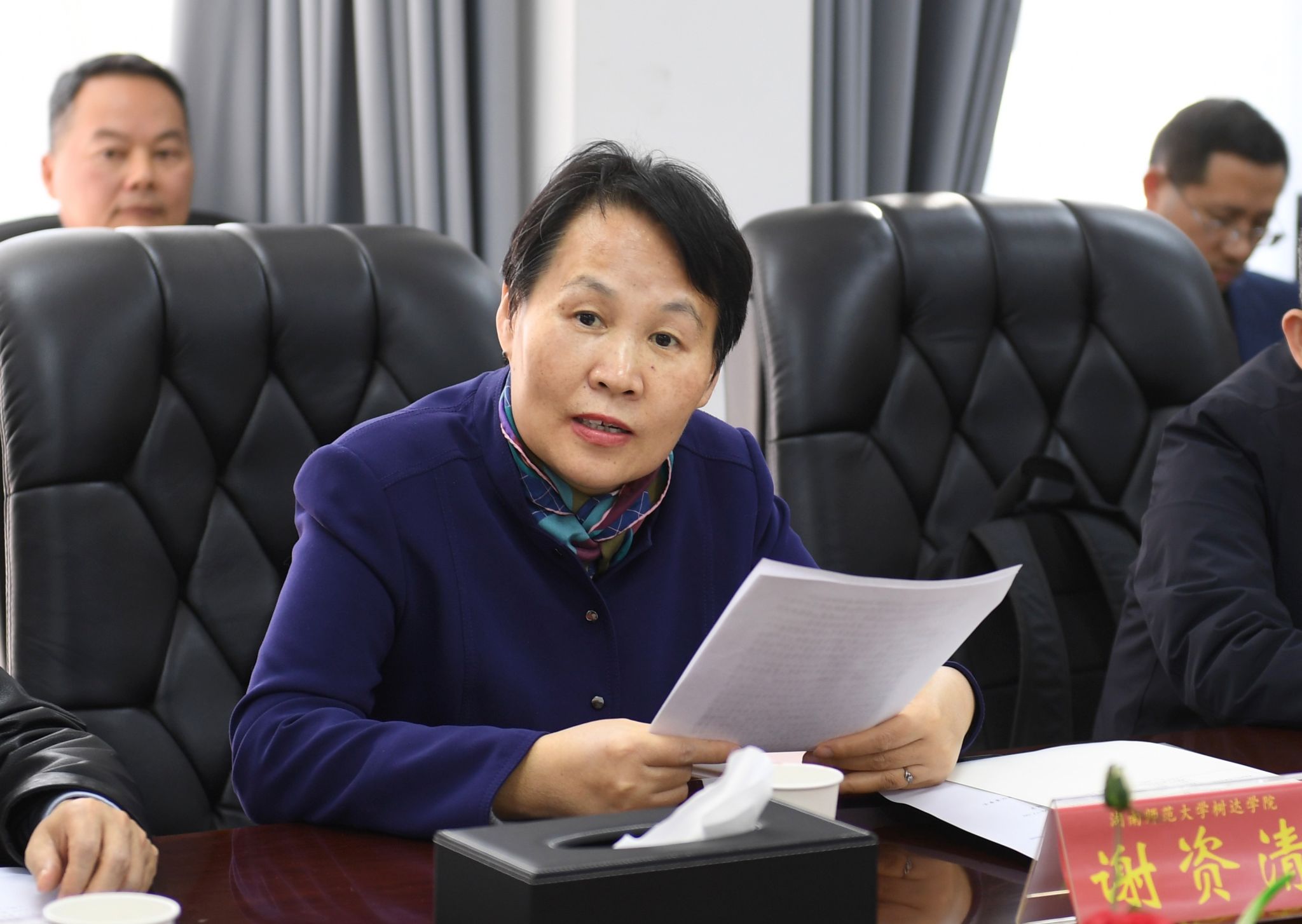 谢资清致欢迎辞。她首先对各院校领导的到会表示热烈欢迎,并简要介绍了树达学院基本情况。她指出,本次会议为各院校搭建了良好的交流平台,对促进交流、凝聚共识具有重要意义,并预祝会议取得丰硕成果。