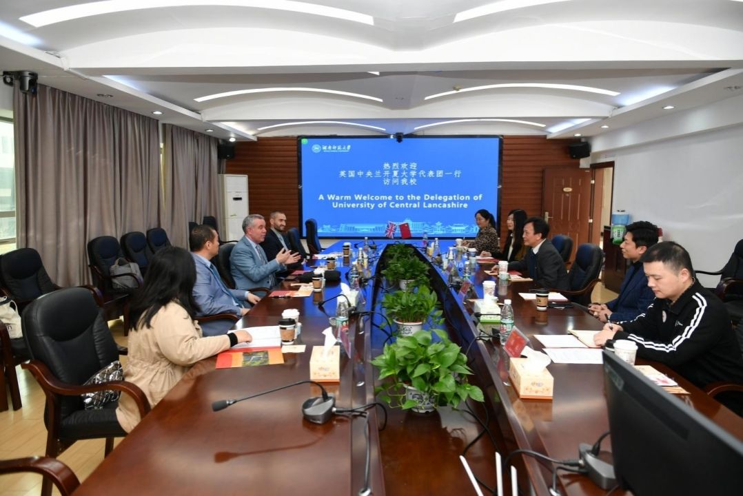英国中央兰开夏大学国际处项目主管理查德·安东尼·布雷姆、中国区主任葛继飞、高级国际专员文小榕及我校中外合作办学工作相关人员参加会议。