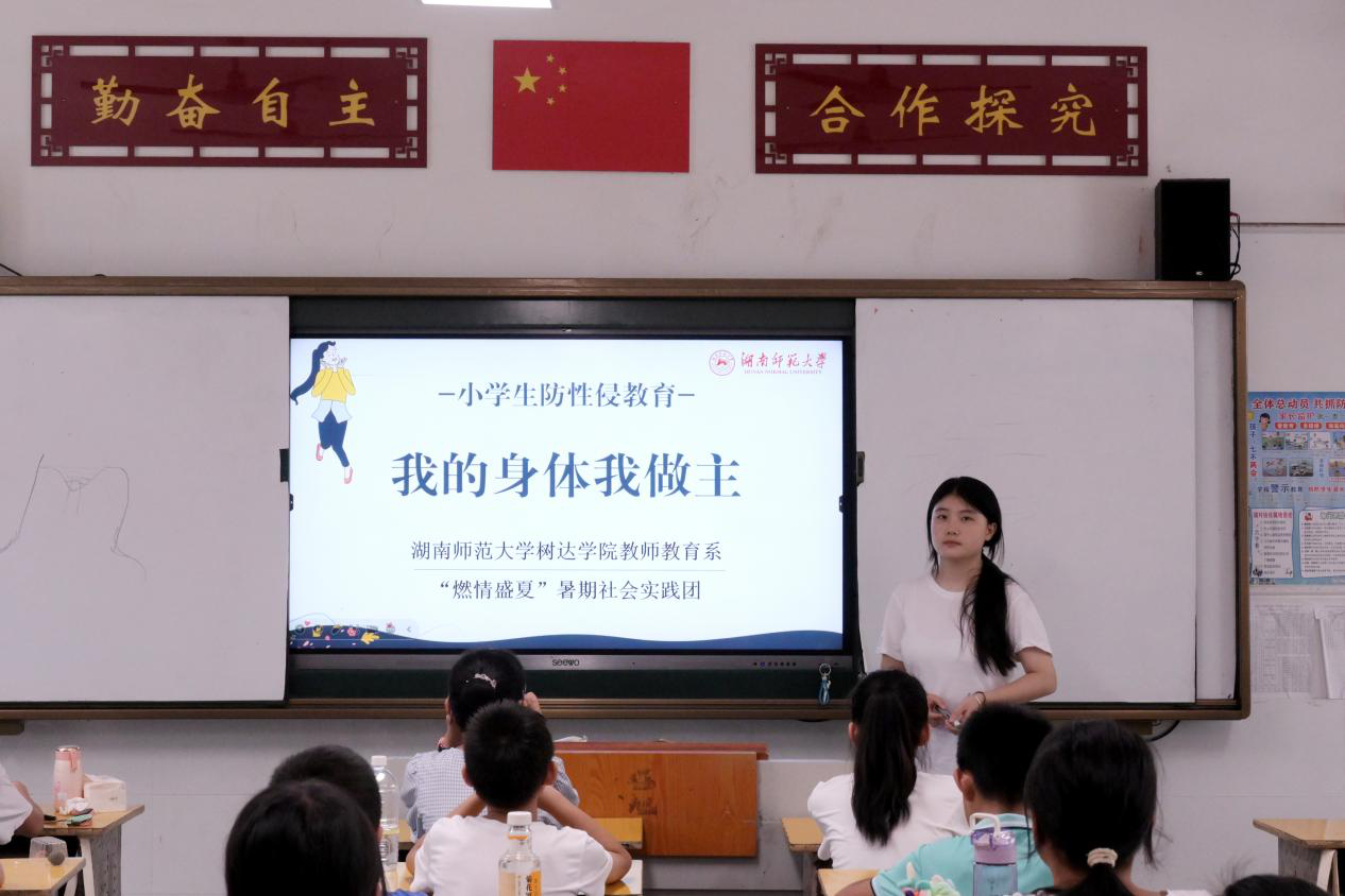 (通讯员 许海微 陈琼芝 曾婷)7月18日上午,学院教师教育系“燃情盛夏,携手教途”暑期社会实践团在郴州市苏仙区良田镇良田学校开展青春健康教育课程。实践团成员王聪、孙妍担任主讲人。