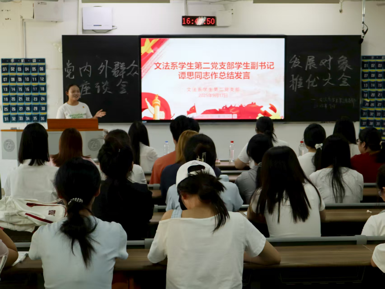 (通讯员 赵晶晶 周李羽檬 席琴)9月17日下午,文法系学生第二党支部在树达楼107教室开展以“传承红色基因,践行初心使命”为主题的专题研讨会。文法系学生第二党支部书记彭娇出席会议,会议由文法系学生第二党支部学生副书记谭思主持。