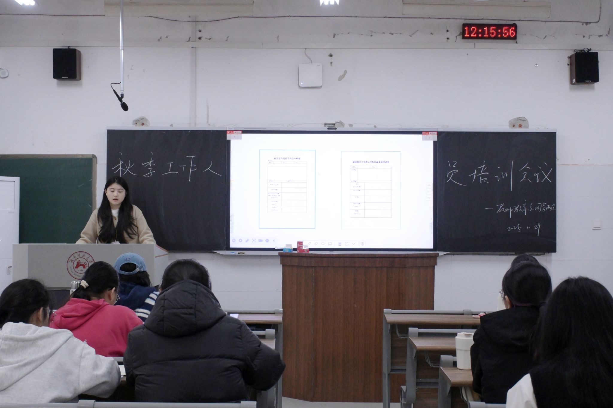 (通讯员 贺猛 唐祖娴 康晓瑶)10月29日中午,我院教师教师系团学两会在树达楼103教室召开秋季工作人员技能培训会。会议由学生会主席团成员孙妍主持。