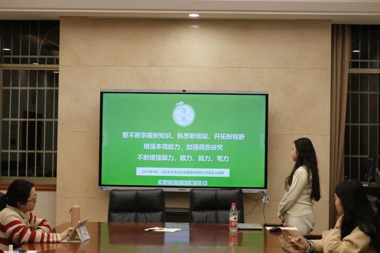 龙晨阳对本次会议进行总结:“身为新媒体工作室的一员,我们要持续提升自身的新媒体素养,为讲好师大故事、凝聚师大力量贡献自己的智慧与力量。”
