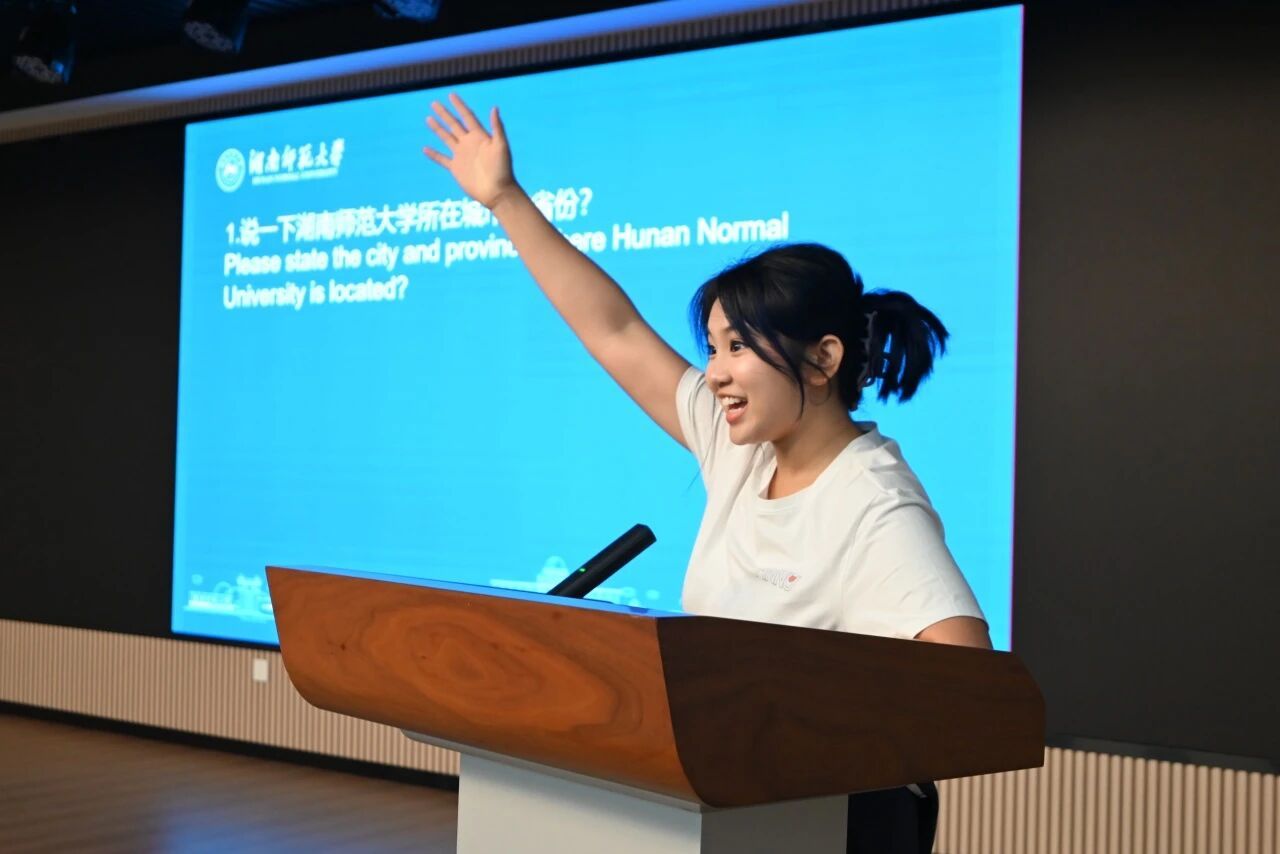 活动伊始,一场轻松有趣的“暖场问答” 迅速拉近了师生距离。从校园卡如何使用、师大校训,到长沙橘子洲、岳麓山等网红打卡地,一个个贴近生活的问题让国际新生们兴致勃勃。