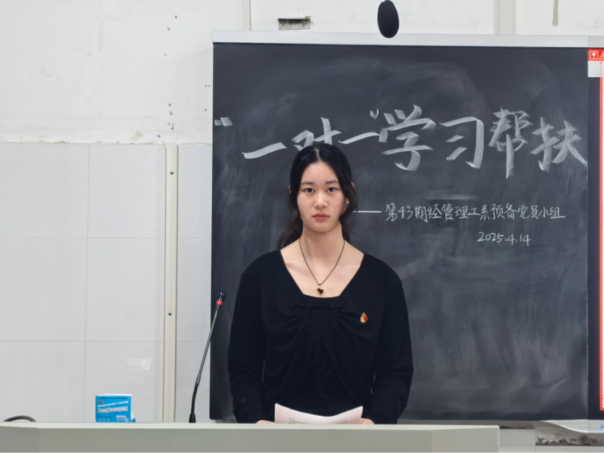 (通讯员 刘艺杰 邹韵霖 叶俊杰)4月14日晚上,我院经管理工系学生党支部第43期预备党员与第78期入党积极分子在树达楼105教室开展“一对一”学习帮扶活动。活动由第43期预备党员刘艺杰主持。