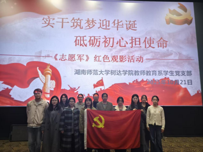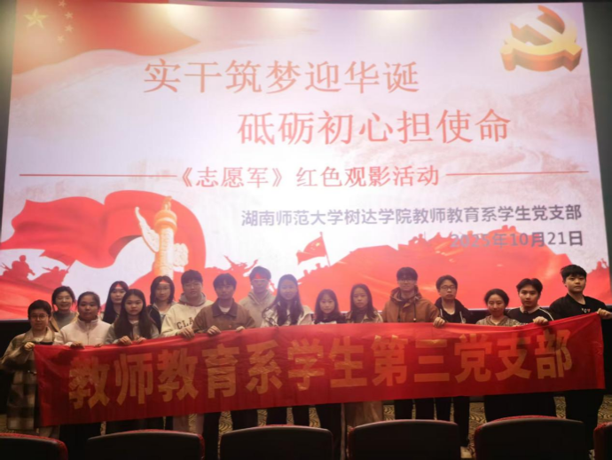 (通讯员 唐祖娴 贺猛 刘婷)10月21日下午,我院教师教育系学生党支部在潇湘国际影城开展以“实干筑梦迎华诞,砥砺初心担使命”为主题的红色观影活动。