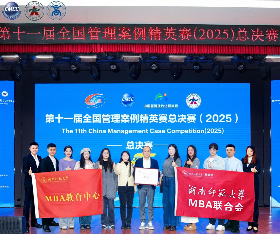 (通讯员  罗方滨)2025年10月26日,由全国工商管理专业学位研究生教育指导委员会指导,中国管理案例共享中心、中国管理现代化研究会管理案例研究专业委员会联合主办的第十一届全国管理案例精英赛(2025)总决赛在郑州大学举行。我校MBA代表队经过激烈角逐,荣获全国管理案例精英赛(2025)总决赛季军。我校MBA代表队连续3年分别以华中赛区冠军、华中三区冠军、西部二区亚军身份晋级全国总决赛,彰显了湖南师范大学MBA教育高质量发展的出色实力和优秀成果。
