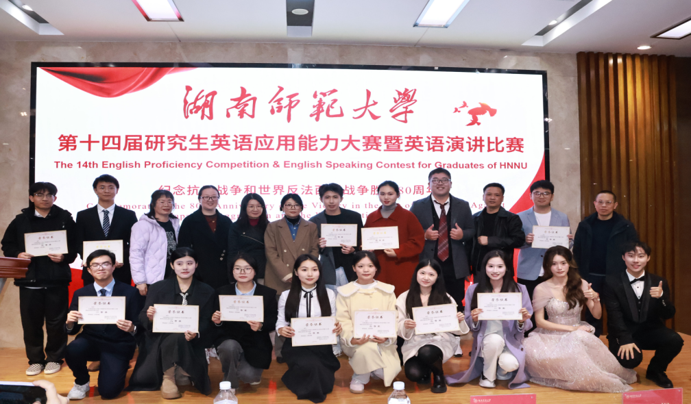 本届大赛由研究生院与外国语学院联合主办,以“纪念中国人民抗日战争暨世界反法西斯战争胜利80周年”为主题,全校研一新生广泛参与,经过层层选拔,共有15组选手晋级决赛。决赛设置命题演讲与即兴演讲两个环节,外语学院肖华锋教授、Ole Doering教授、侯奇焜副教授、杨雨箫副教授、邓华副教授、Rianna Eleanor Blee老师等担任评委。