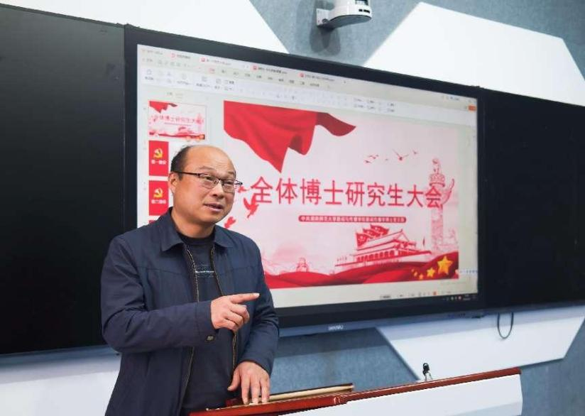 (通讯员 曾要)4月9日下午,新闻与传播学院博士研究生大会在新传院402智慧教室召开。新闻与传播学院党委书记李泳波、正处级专职组织员王云、副院长燕道成等出席会议。会议由新闻传播学博士党支部第一书记乔玉为主持,新闻传播学全体博士通过线上线下的方式参加此次会议。
