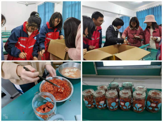 经过大家的齐心协力,兴趣小组成员在一片欢声笑语中完成10瓶腐乳的制作,并一一贴上了标签。