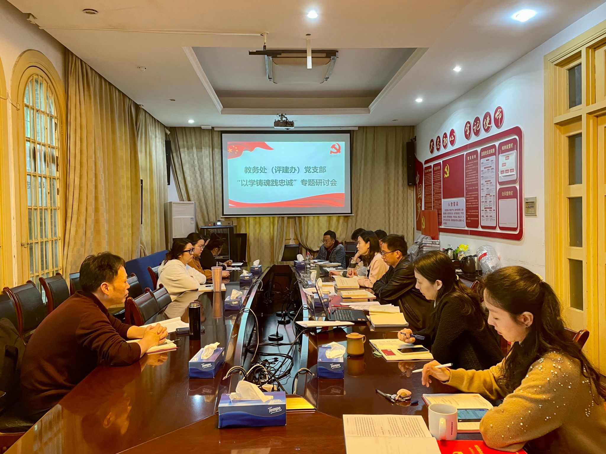 此次专题研讨会议是教务处(评建办)党支部“一月一课一片一实践”活动要求的落实和推进。党支部全体党员参加学习。