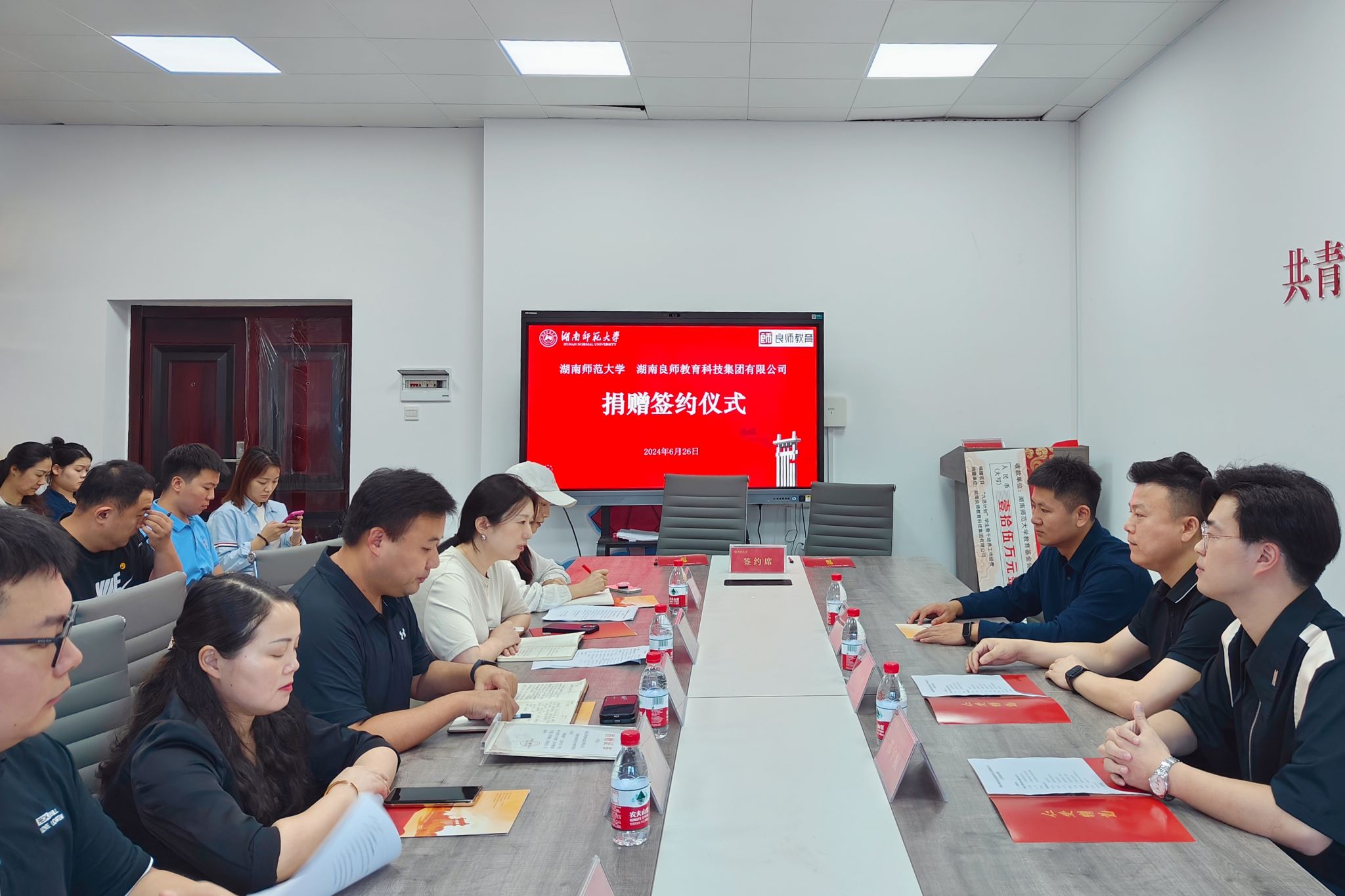 (通讯员 邓郭欢)6月26日下午,湖南良师教育科技集团有限公司捐赠签约仪式在我校励德楼团委会议室举行。捐赠仪式由我校团委副书记胡滢主持。