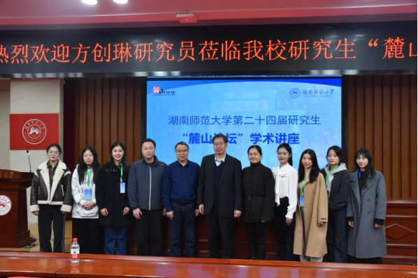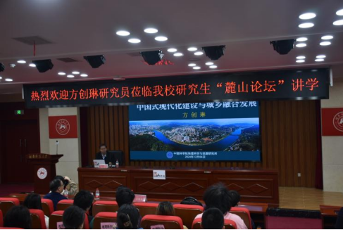 12月4日下午,由湖南师范大学研究生院主办,校研究生团委、研究生会承办的我校第二十四届研究生“麓山论坛”学术讲座在中和楼129报告厅举行。中国科学院地理科学与资源研究所二级研究员,国际欧亚科学院院士,中国地理学会会士,国家万人计划领军人才,教育部长江学者特聘教授方创琳带来题为“中国式现代化建设与城乡融合发展”的讲座。湖南师范大学地理科学学院院长周国华、研究生院党委副书记苏涵琼等领导出席本次讲座,我校近两百名研究生参加了讲座。讲座由我校研究生团委研究生会成员罗嘉怡主持。