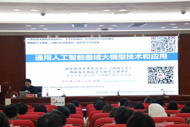 12月9日下午,由湖南师范大学研究生院主办,校研究生团委、研究生会承办的我校第二十四届研究生“麓山论坛”学术讲座在中和楼342报告厅举行。长江学者、2024年全球前2%顶尖科学家(人工智能)、国家超级计算长沙中心副主任、湖南省生物信息学会和生物医学工程学会理事长(发起人)、湖南大学“岳麓学者”二级教授/博导彭绍亮带来题为“迈向通用人工智能的垂域大模型技术和应用”的讲座。湖南师范大学信息科学与工程学院副院长唐文胜出席本次专题培训会。讲座由我校研究生团委研究生会成员何巧玲主持。