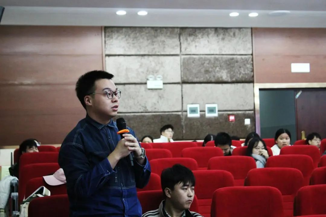 在提问交流环节,同学们积极提问,彭绍亮教授侃侃而谈,现场气氛热烈。针对新文科时代的人工智能的教育问题,彭绍亮教授提醒青年人应掌握学科基础,培养创新思维与人工智能思维,并鼓励研究生们积极加入国家人工智能的发展建设。针对增强大模型的新技术问题,彭绍亮教授引出详实的前沿应用案例,表示智能体和人类协同工作是下一步人工智能的研究要点,并强调了人工智能“向善”的伦理问题。
