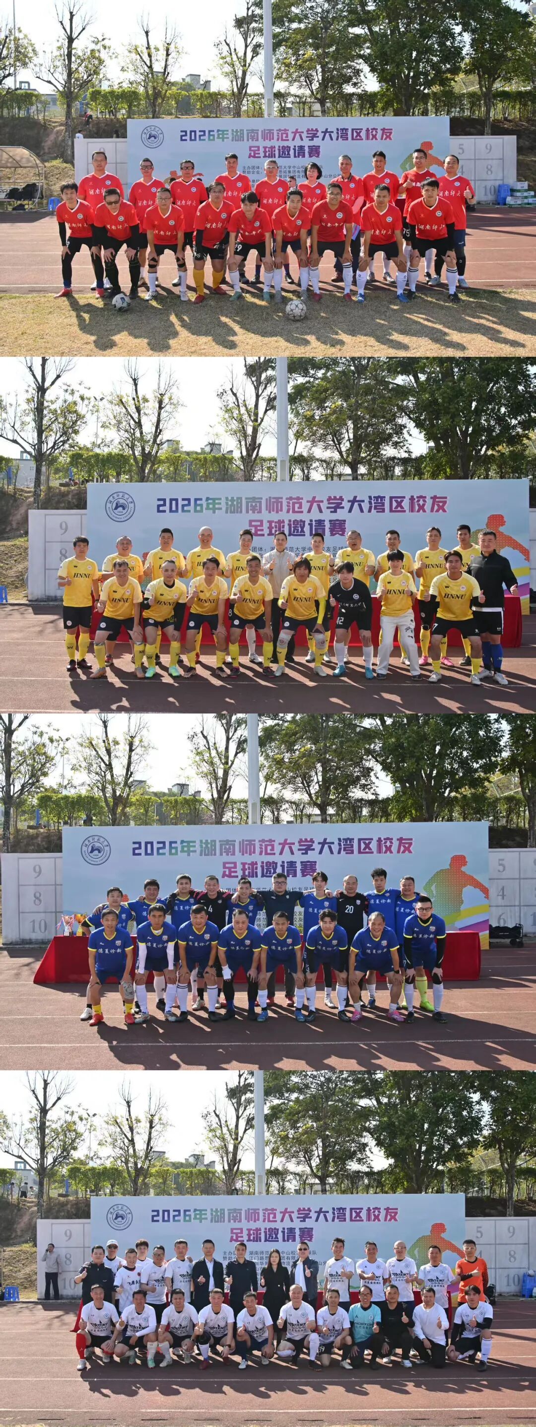 2026年1月10日,由中山校友足球队牵头的首届湖南师大大湾区校友足球邀请赛在中山市实验中学举办。赛事吸引中山、广州、深圳、珠海(澳门)四地近110名校友参赛,路思拓集团、华展国际物流公司相关负责人,兄弟校友会代表及中山市实验中学领导等嘉宾出席活动。